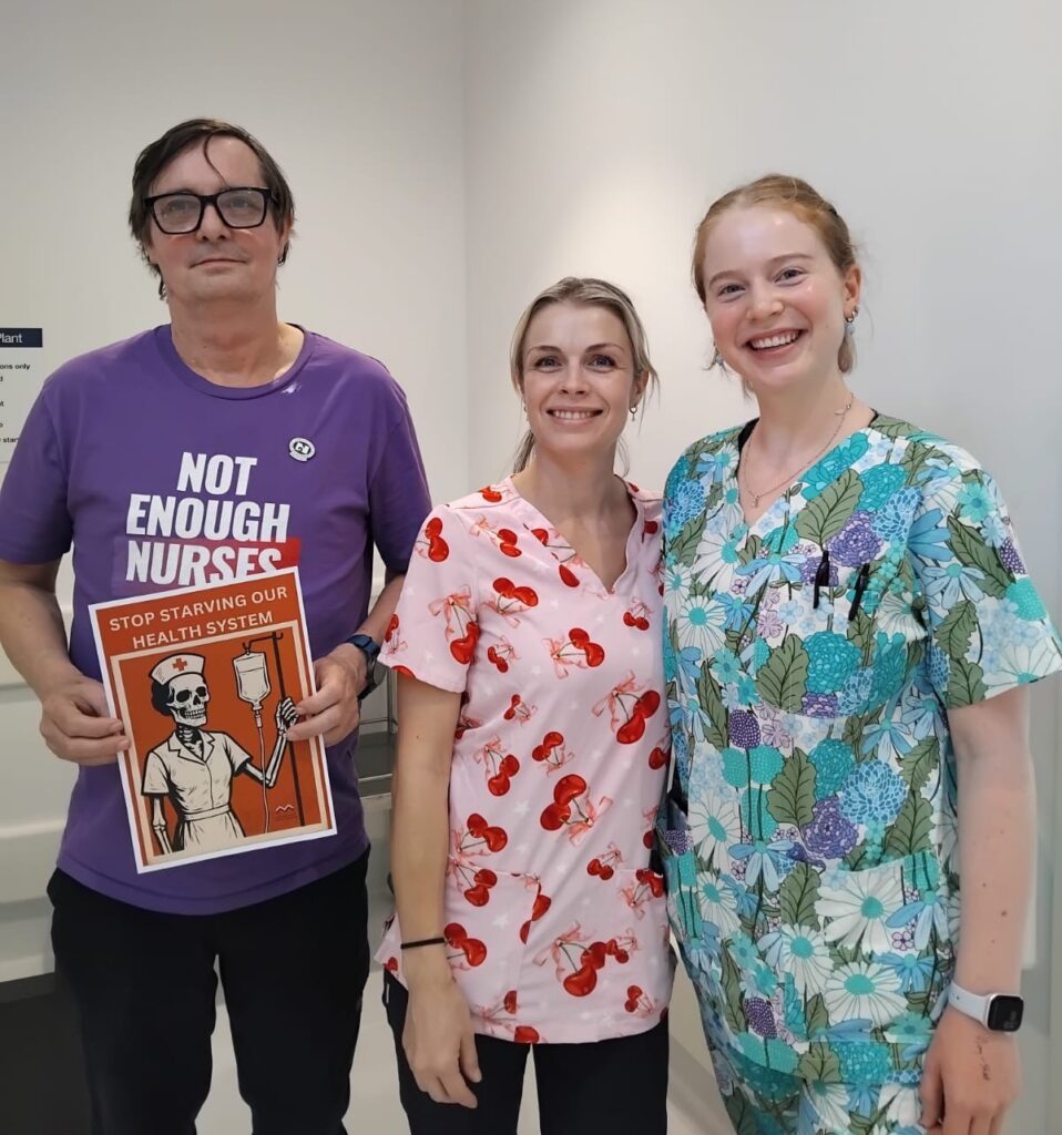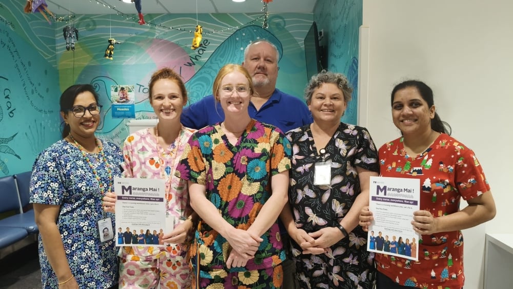 They are not alone. Te Whatu Ora members throughout the country are continuing their visibility strikes which now include almost 1000 members in Taranaki, including the Base Hospital Ward 2B Paediatric team who donned colourful scrubs (see photo above), Whangārei and Waitaha Christchurch.
