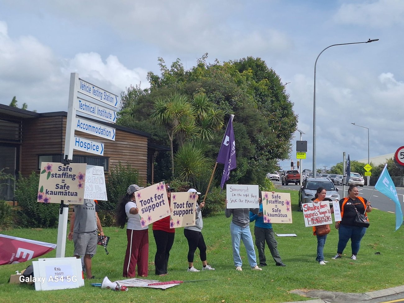 Members at Summerset Falls in Warkworth held a lively demonstration outside their facility this week about the low staffing levels and recent proposal to reduce hours on the roster.