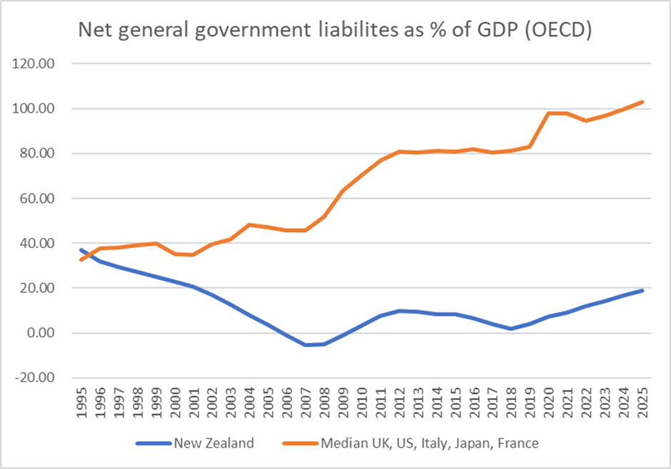 The Treasury last week told the Government there was room to borrow more for essential infrastructure such as health and education. The fact is that Aotearoa/New Zealand GDP to debt ratio is the lowest in comparative countries. |